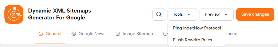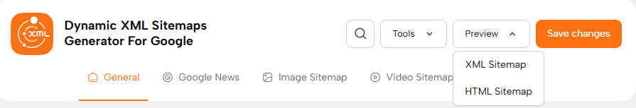 Also, Toolbar contains Preview links to all your Sitemaps, as well as Tips, and Useful Links.