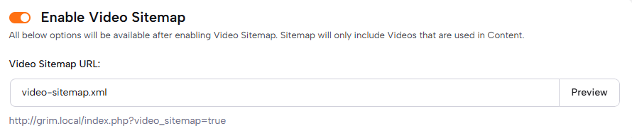 Video Sitemap URL: The URL where your Video Sitemap will be accessible. By default, it is set to video-sitemap.xml.