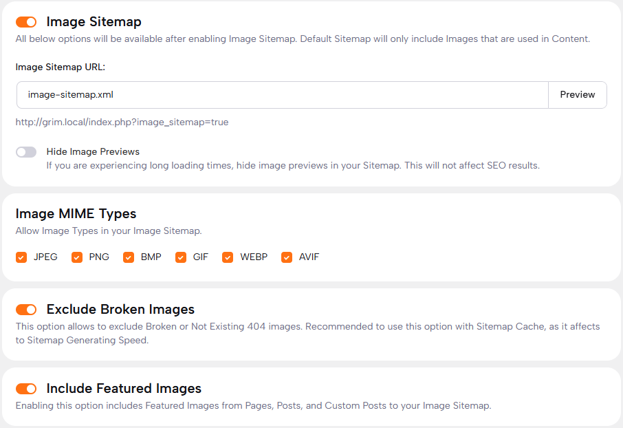 Ensure the integrity of your Image Sitemap by excluding broken or non-existing 404 images. It’s recommended to use this option in conjunction with Sitemap Cache to mitigate its impact on Sitemap Generating Speed.