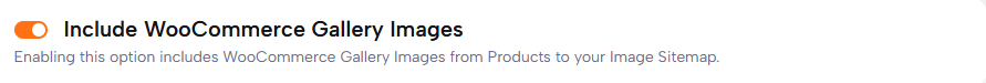 Enabling the Include WooCommerce Gallery Images option extends the functionality to incorporate the Gallery Images associated with your WooCommerce Products into your website’s Image Sitemap.