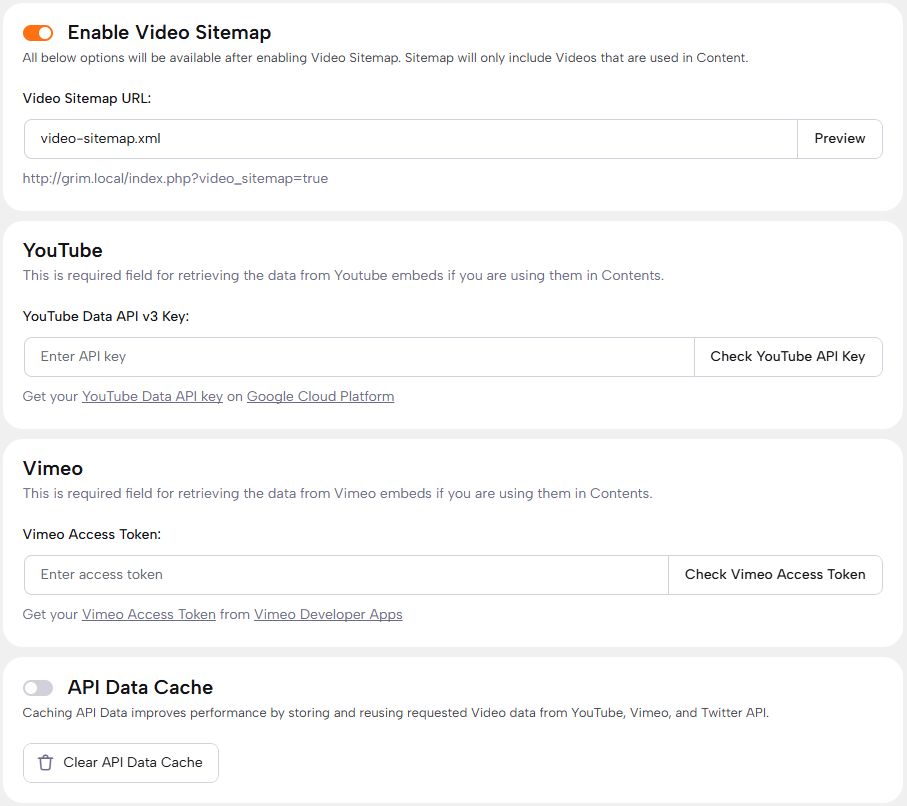 Ensure seamless retrieval of data from YouTube URLs and embeds by providing the required YouTube Data API key.